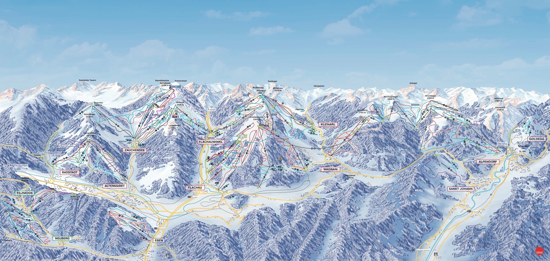 Het hotel bevindt zich op slechts 200 m van de gondel ‘Achterjet’. Een extra troef is dat het hotel een gratis, verwarmde skidepot ter beschikking stelt voor de hotelgasten aan de gondel. Salzburger Sportwelt bestaat uit een aaneenschakeling van de acht bekendste skigebieden van de regio rond Salzburg. De enorme skicarrousel rond de skistations Flachau, Wagrain-Kleinarl, St.Johann-Alpendorf, Radstadt, Altenmarkt-Zauchensee, Eben en Filzmoos vormt de kern van het uitgebreide skigebied ‘Salzburger Sportwelt’.