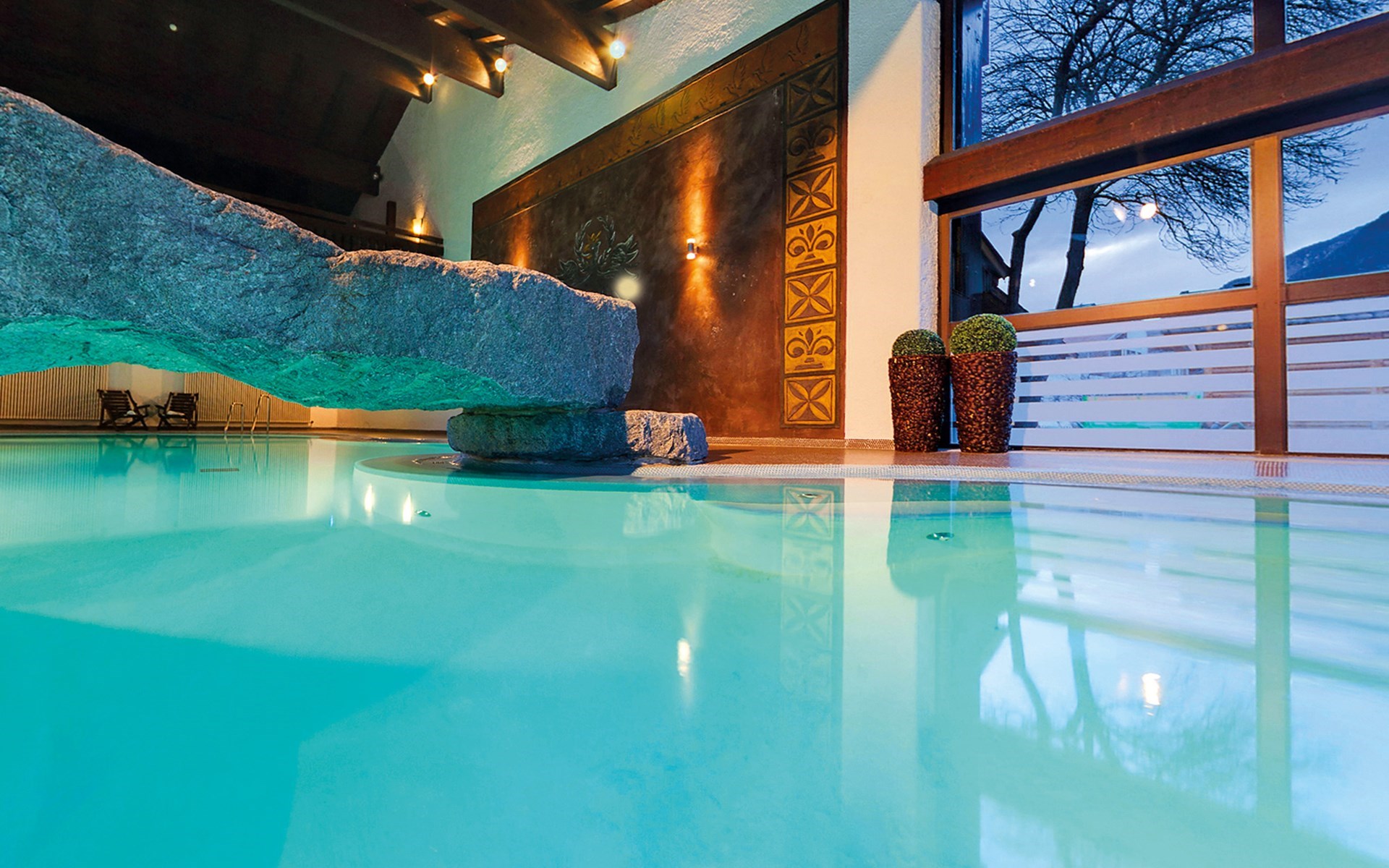 - wellnessruimte met een binnenzwembad (15 x 8 m), sauna, stoombad, infraroodcabine